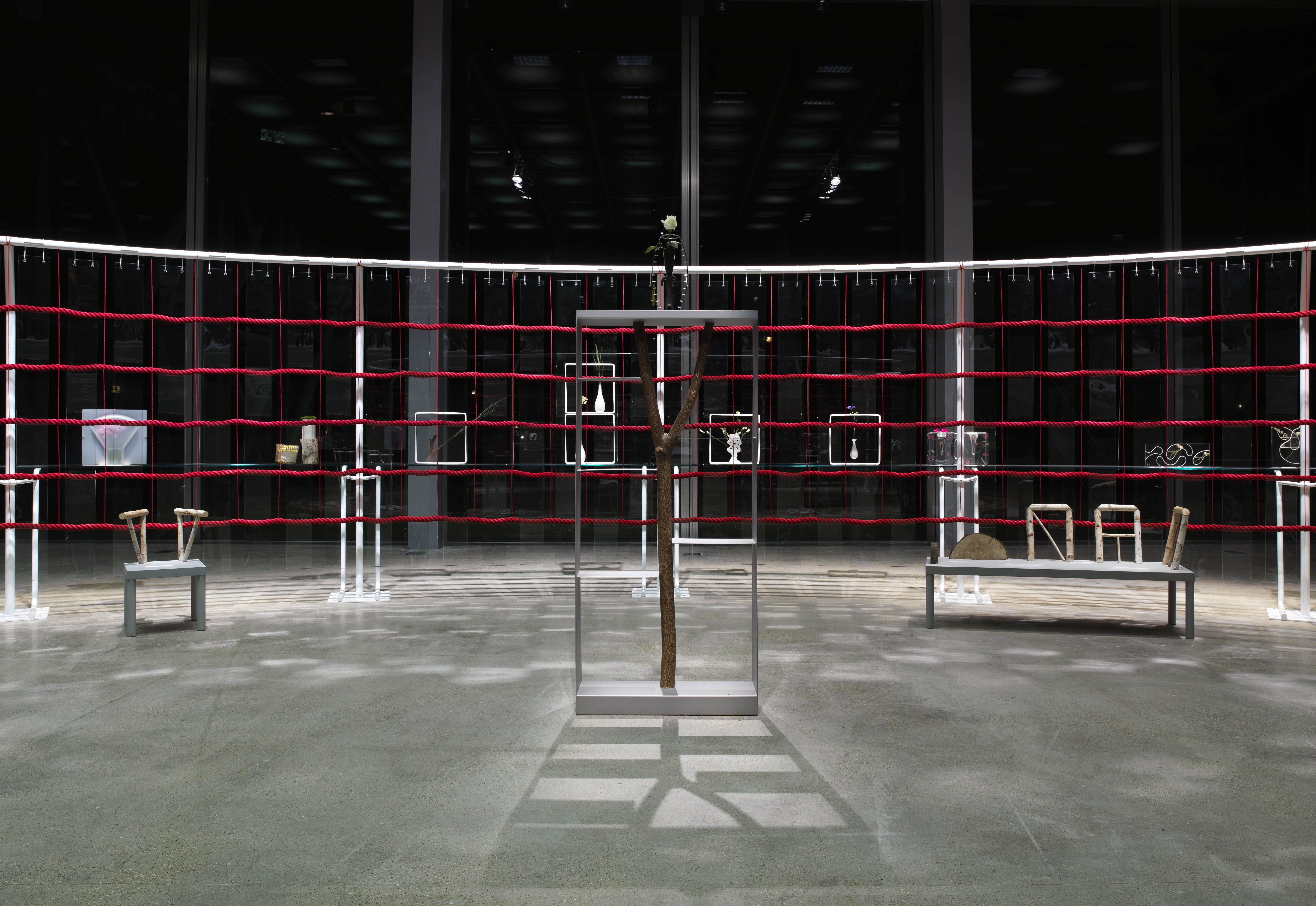 In 2008, the Fondation Cartier pour l’art contemporain welcomed famous Italian designer Andrea Branzi, who on this occasion created two monumental installations specifically for the ground floor of Jean Nouvel’s building. Combining a variety of materials including glass and steel, hemp and bamboo shoots, the artist has devised a frail, delicate, and poetic architectural structure in which industrial, manufactured, technological, and natural elements are intertwined.