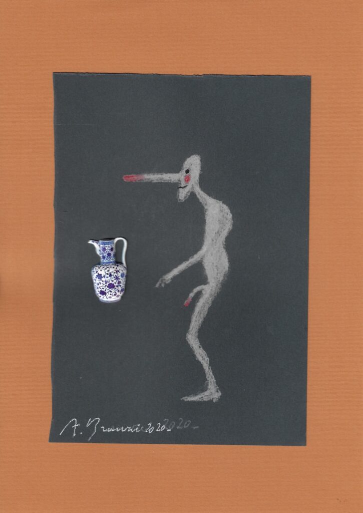 Andrea Branzi percorre un viaggio all’interno della storia dell’arte, trasformando nei suoi disegni i protagonisti di molti capolavori assoluti in tanti Pinocchio conducendoci in una ricerca e una riflessione sulla verità e la menzogna.
