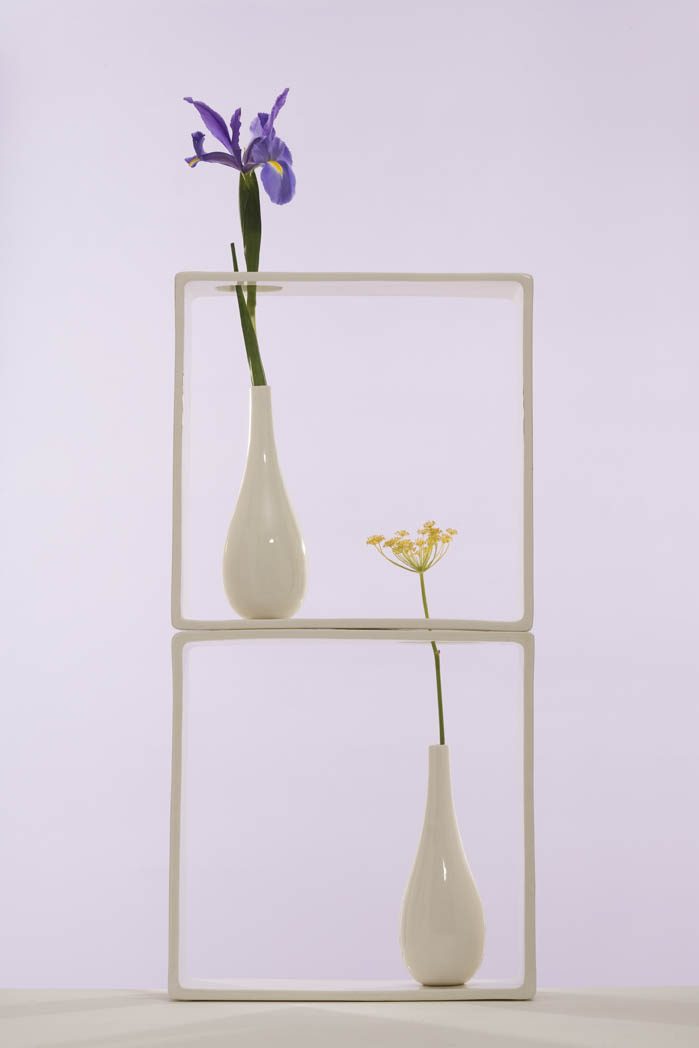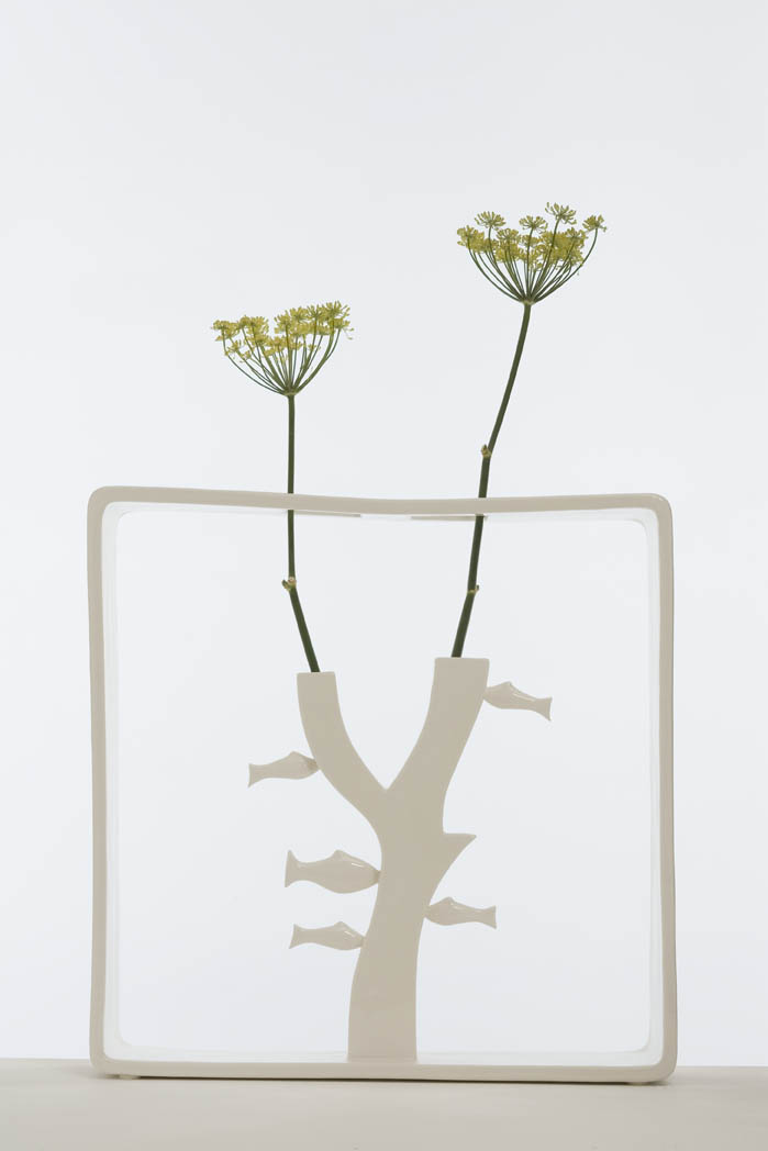 “PORTALI” è una collezione di 18 ceramiche bianche, concepite come se fossero dei piccoli ambienti tutti uguali; dentro ciascuno di questi portali si colloca però un vaso sempre diverso (o un tronco d’albero).