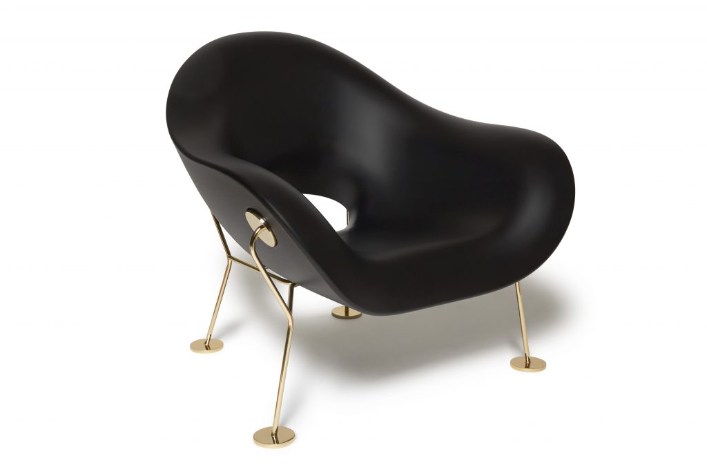 Pupa Armchair is an unbridled and light chair with chrome frame, suitable for outdoor environments. Designed by Andrea Branzi, it leans on a light metallic frame leaving the volume floating in the space and enhancing its sensual elegance.